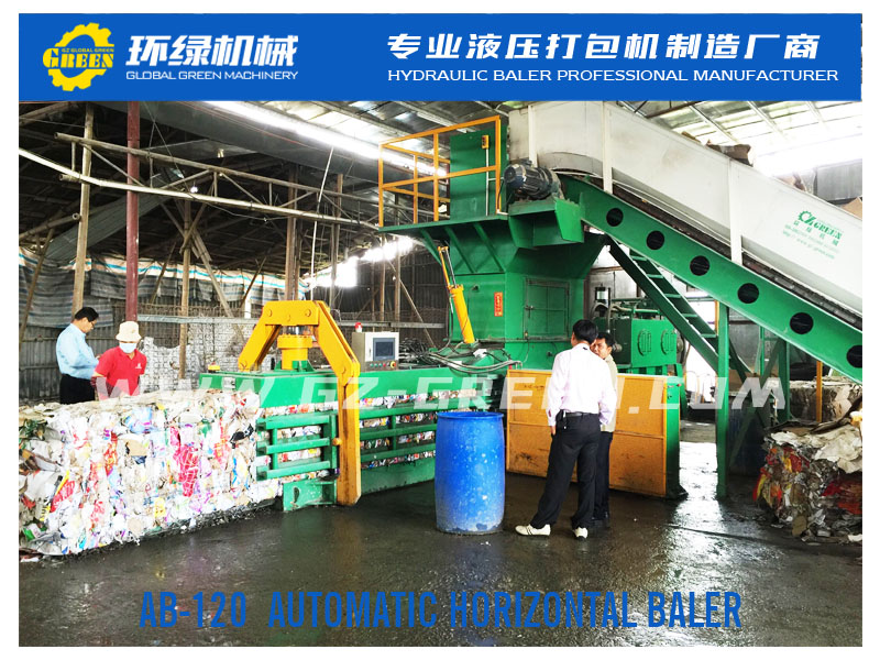 "AB系列(全自动卧式打包机)尤其适合要求高效率的用户。机器专门用于打包废纸,纸皮,塑料薄膜,纸箱和棕榈丝等等。这个系列的机器可以在PLC系统的控制下自动加料,打包,捆绑。优点:1)无人化、全自动,提高效率,节省人力2)适用于废纸、塑料、布料等固体废料的回收,方便储运。3)加料口可接输送带上料,适用于废纸纸箱、塑料、布料及大型垃圾处理等场所4)独特的捆包装置,速度快,结构简单,动作稳定,故障率低且易于保养5)国际标准的电路布置、图示化操作指示以及详细的部件标示,是操作者简单易懂并提高维护效率6) 可自由设定出包长度,准确记录打包数值,方便操作者使用7)无需特殊的场地基础设施,使安装简单容易"
